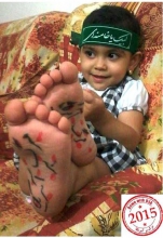 به نقل از زنگ اول، وبلاگ مرجع وبلاگ نویسان همدان نوشت:دختربچه خرود سال با سربند لبیک یا خامنه ای و نوشتن شعار مرگ بر آمریکا در کف پای خود نفرت خود را از آمریکا اعلام کرد.